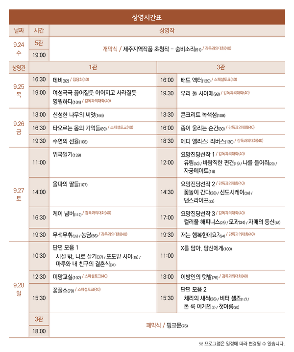 개막식은 이달 23일 오후 7시 롯데시네마 제주연동점에서 열릴 예정이다.
