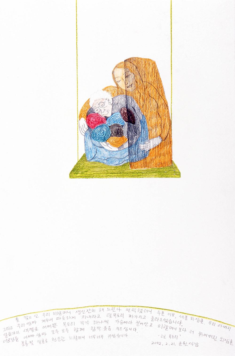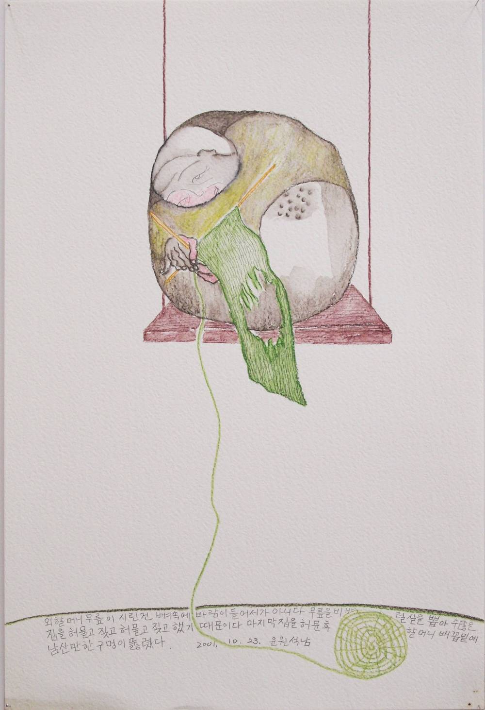 2002.02.20-〈뜨개질 하는 여자〉_종이위에색연필_30x45cm