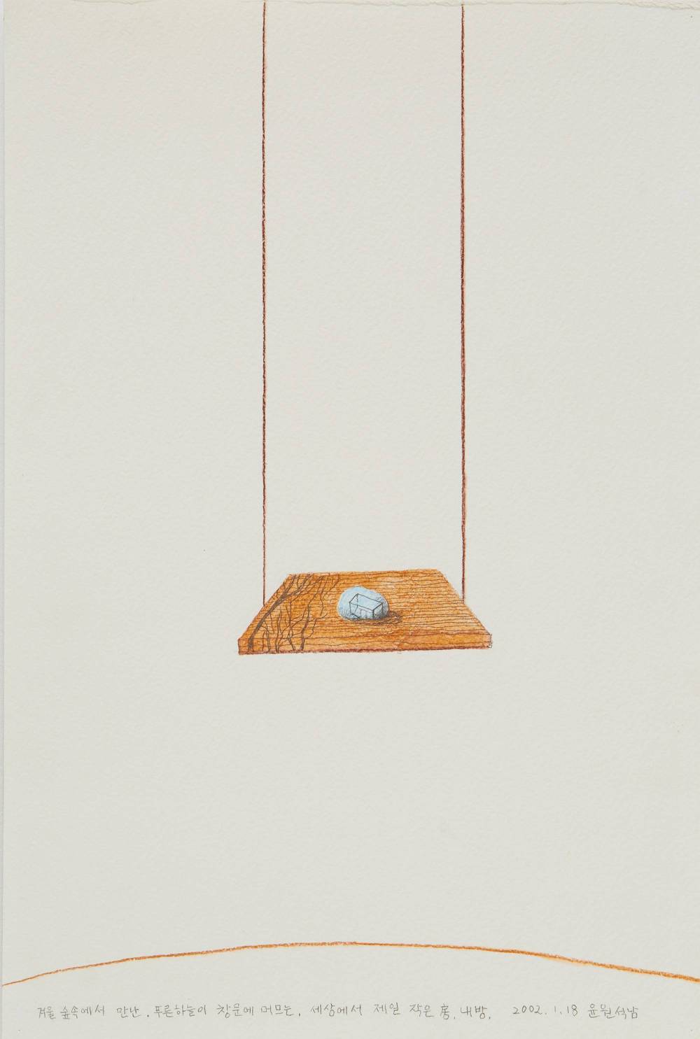 2002.01.18-〈겨울 숲속에서 만난 푸른하늘이 창문에 머무는, 세상에서 제일 작은방, 내방〉_종이위에색연필_30x45cm