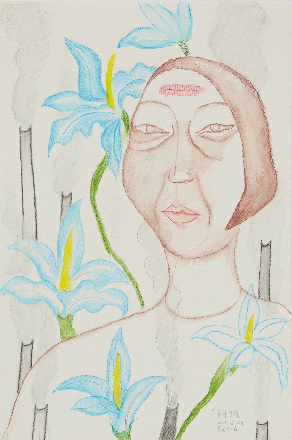 2001.08.27-〈꽃과 굴뚝〉_종이위에색연필_30x45cm