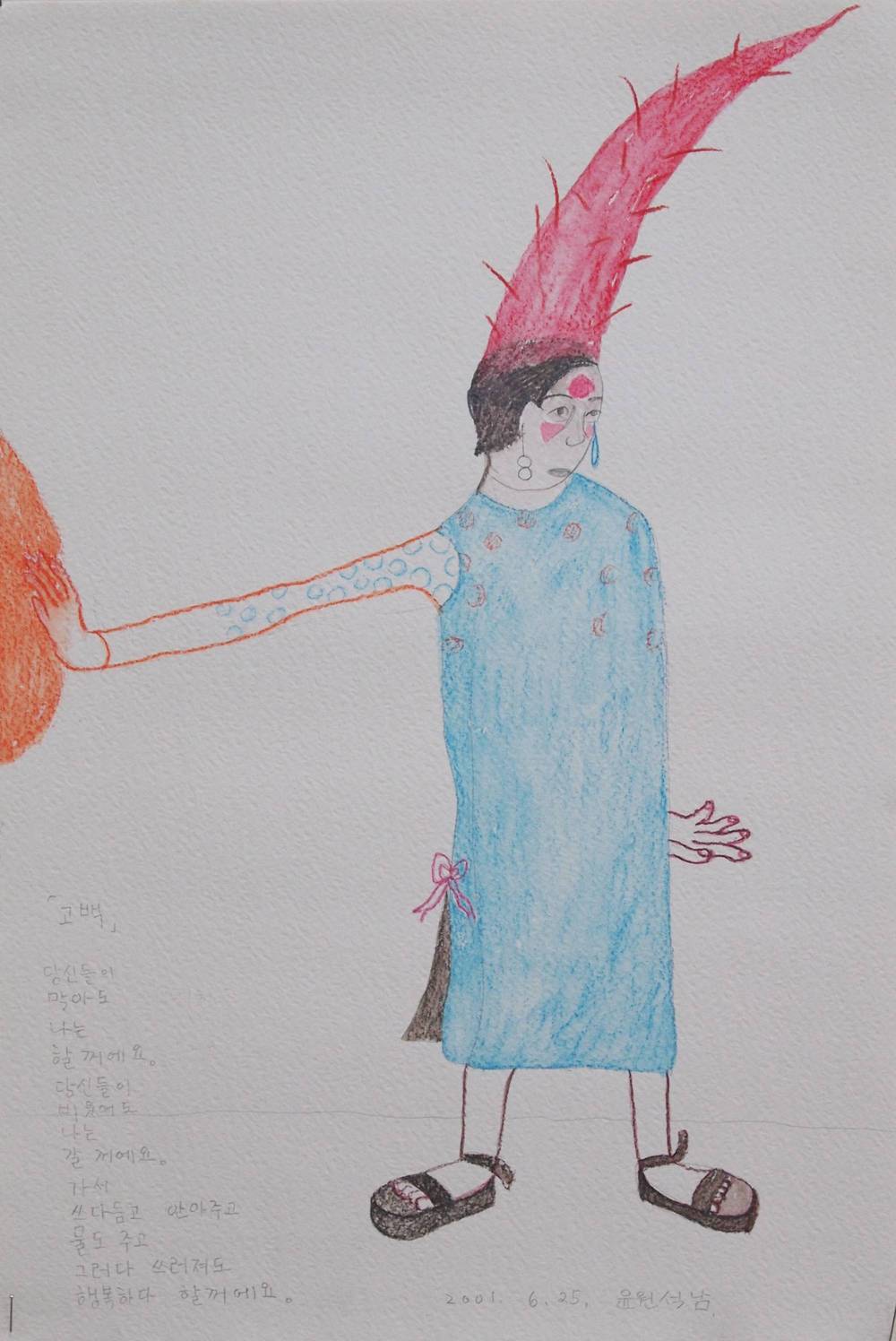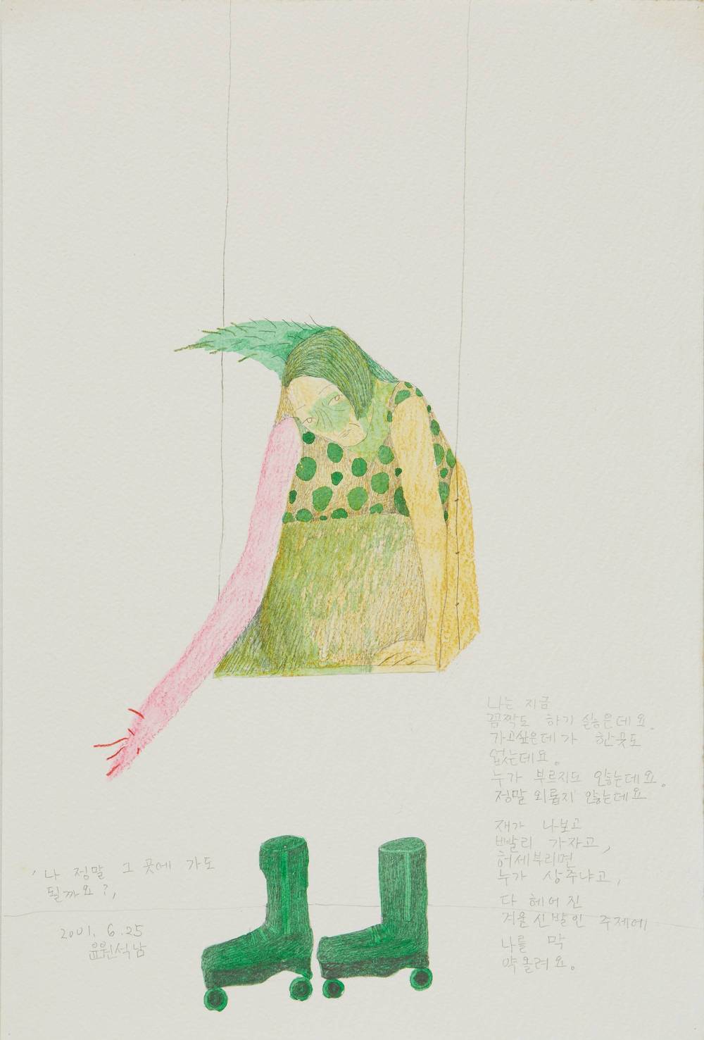 2001.06.25-〈나 정말 그 곳에 가도 될까요?〉_종이위에색연필_30x45cm