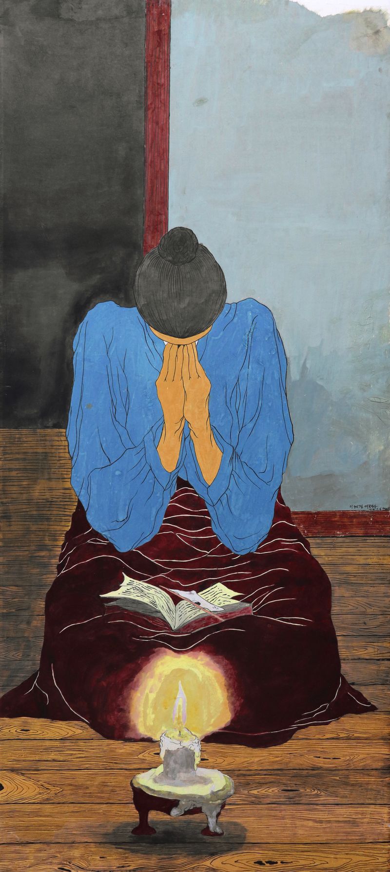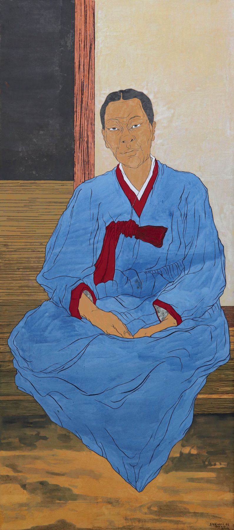 2025 이혜경 초상_한지위에채색_210x94cm_2025_윤석남
