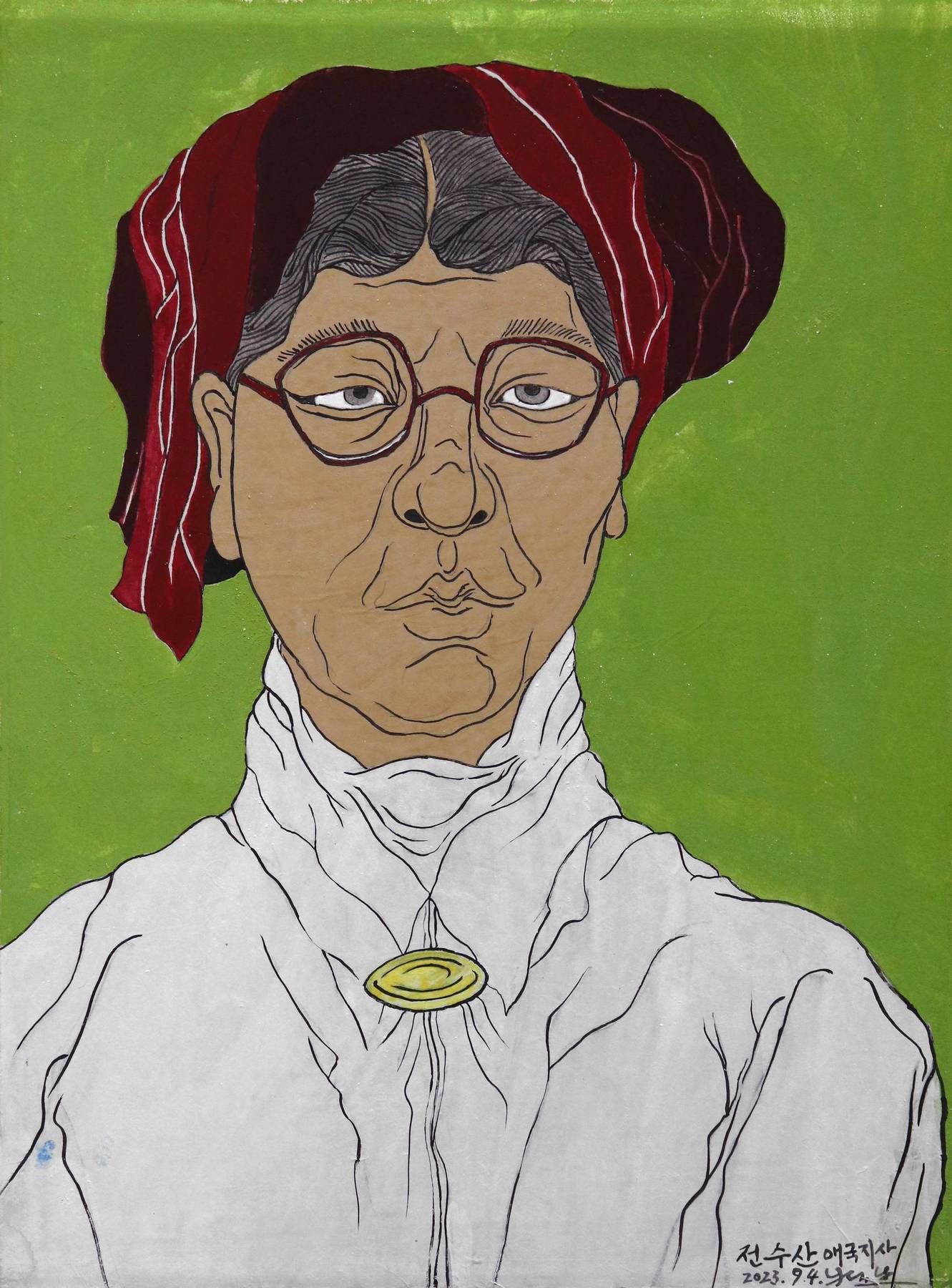 2023 전수산 초상_한지위에분채_47x35cm