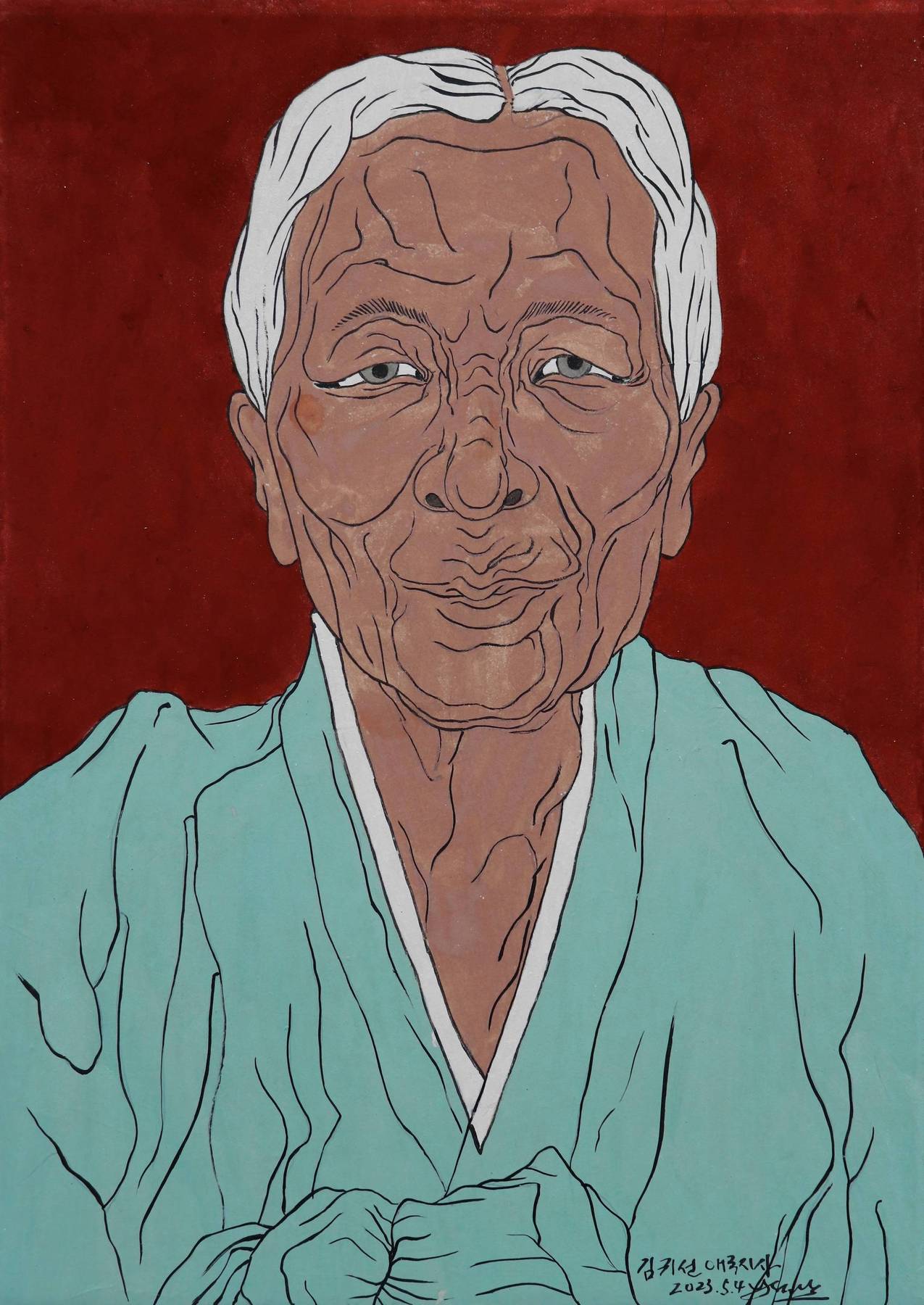 2023 김귀남 초상_한지위에분채_47x35cm